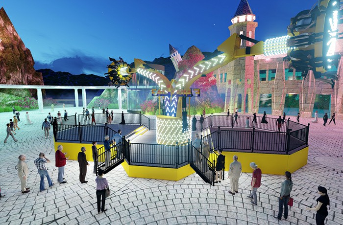 繞垂直軸旋轉(zhuǎn)、座艙繞支臂軸旋轉(zhuǎn)的陀螺類游樂設(shè)施;大臂向上拉升,到達(dá)上限位置后,座艙旋轉(zhuǎn);傾斜運(yùn)行、俯瞰大地,體驗(yàn)翻倍;